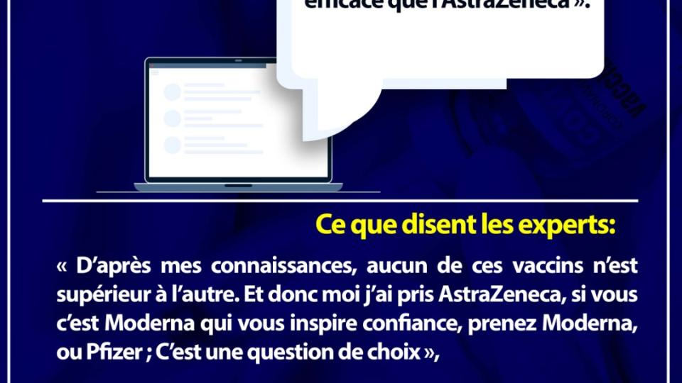 Pour cet internaute, il voulait juste dire que le vaccin Astrazeneca n’était pas efficace, une thèse rejetée par le responsable de la riposte contre le coronavirus en RDC, le docteur Jean-Jacques Muyembe lors de la conférence de presse tenue le 22 septembre avant l’arrivée du vaccin Pfizer.