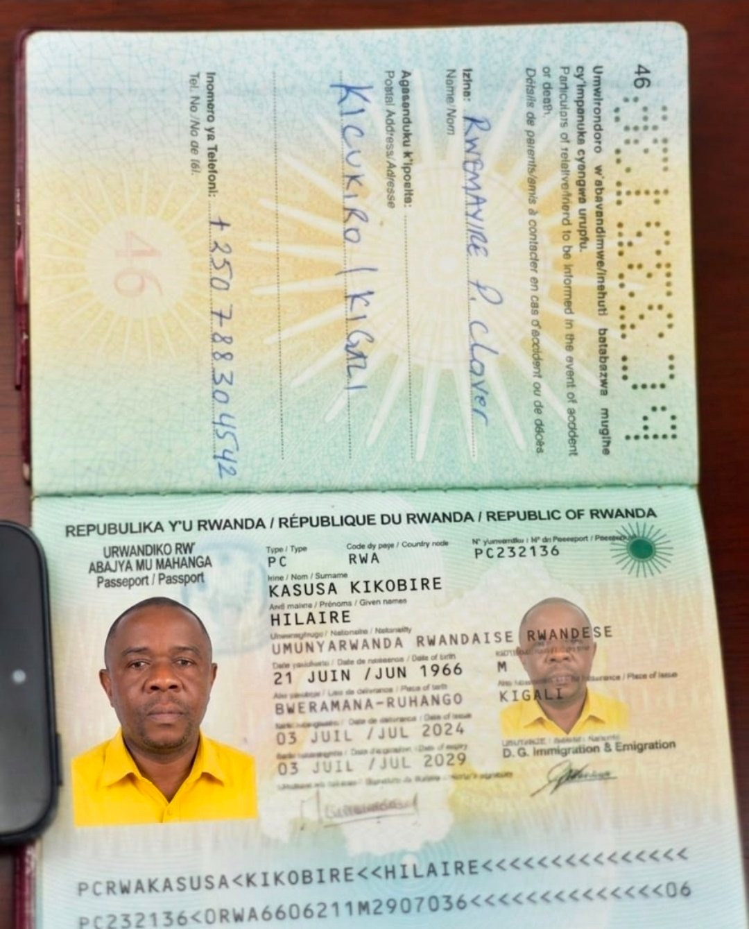 De plus, le nom qui apparaît sur ce passeport est “KASUSA KIKOBIRE HILAIRE” alors que l’ancien député s’appelle “ KASUSA KIKOBYA BARUANI HILAIRE”.